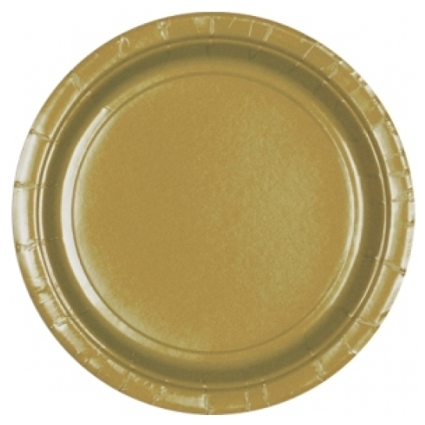 Pakje met 6 gouden papieren bordjes van 18cm doorsnee.