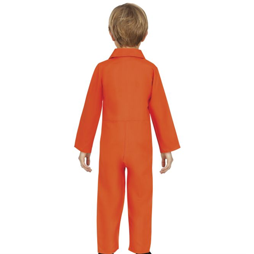 Stoer boevenpak in het oranje. Zoals de Amerikaanse gevangenen hem dragen. Het inmate pak bestaat uit één geheel en sluit met een rits aan de voorkant. Verkrijgbaar in twee kindermaten; 7-9 jaar en 10-12 jaar.