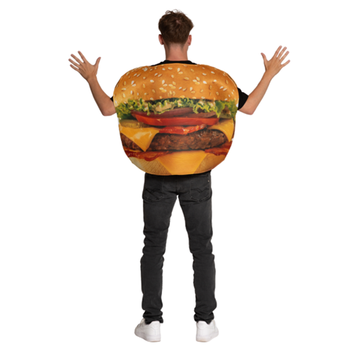 Met dit hamburger pak ben je gegarandeerd een smakelijke blikvanger op elk feest. Het kostuum is gemaakt van lichtgewicht foam materiaal, waardoor het comfortabel draagt en mooi in vorm blijft. Het pak is one size en eenvoudig over je eigen kleding aan te trekken. Perfect voor carnaval, themafeesten, foute party’s of vrijgezellenfeesten. Met dit kostuum zorg je direct voor een flinke dosis humor en gezelligheid.