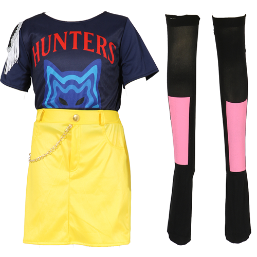 Met dit Mira K-pop Demon Hunter kostuum stap jij zelfverzekerd het podium op. De outfit bestaat uit een stoer shirtje, een opvallend rokje en bijpassende kousen: samen een perfecte mix van girl power, stijl en performance.