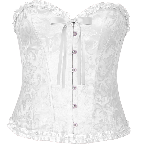Mooi stevig korset in het wit met een subtiel barok patroon. Het witte korset sluit aan de voorkant met zilveren haakjes en aan de achterkant is het korset nog te verstellen met een lange veter. Ook heeft het aan de voorkant nog een dubbele veter die voor de sier extra geknoopt kan worden. Het korset is gemaakt van satijn lijkende stof en gevoerd met een zacht materiaal voor een comfortabele fit. Het korset heeft een stevige belijning waardoor hij goed blijft zitten. Fantastisch voor een piraten outfit, een middeleeuws kostuum, een burlesque party, Steampunk verkleedfeest, een gothic look en ga zo maar door. Een goed korset mag bijna niet ontbreken in een goede verkleedkist.