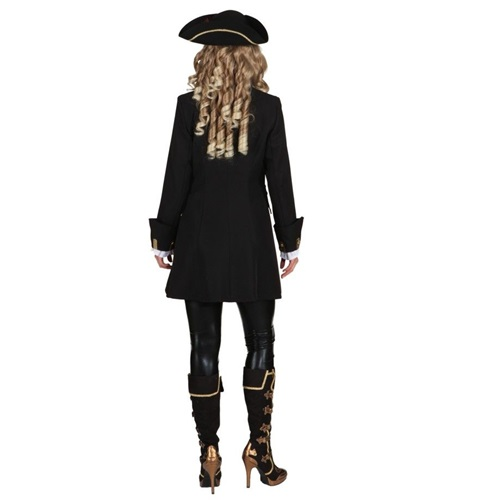 Prachtige lange zwarte damesjas voor een piraat of een historisch personage. Doe er zelf een witte blouse en een zwarte broek onder en je bent klaar. Deze zwarte piratenmantel spreekt voor zichzelf. Gemaakt van goede kwaliteit stof en afgewerkt met goudband.