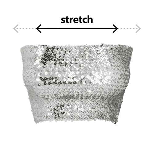 Deze zilveren pailletten bandeau top is de ultieme eyecatcher voor elke party. Glamoureus door de glinsterende pailletten en comfortabel door het elastische materiaal, dus instant party-ready. Deze strapless bandeau top maakt van elke outfit een statement!